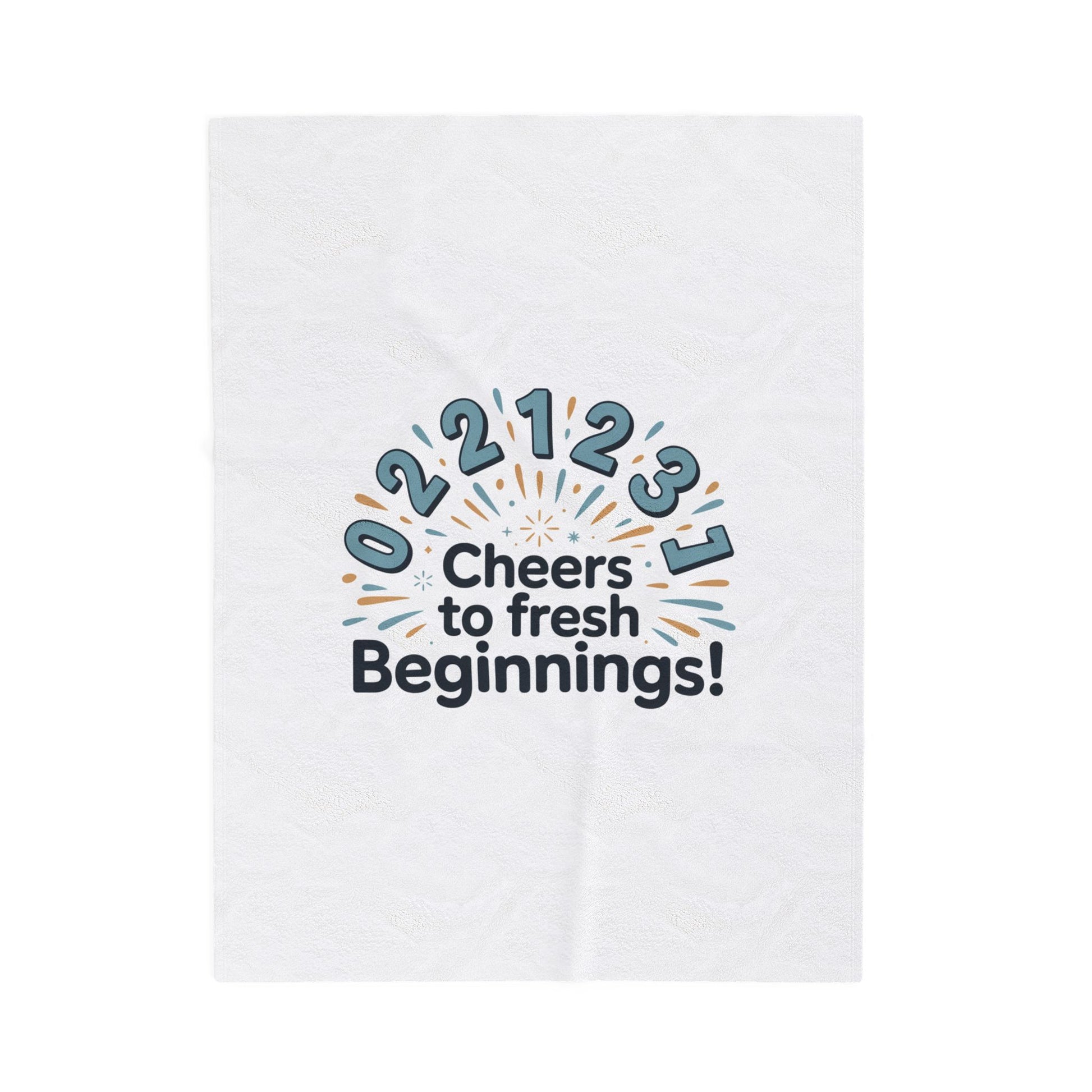 A soft, text-led plush blanket that pairs restrained New Year humor with optimistic wording for a modern countdown moment. The white velveteen surface features bold sans-serif numbers arcing like confetti above the phrase “Cheers to fresh Beginnings!” in a clean, contemporary layout — a balanced mix of hopeful and wry that matches the 2026 goals/new year motivation trend. Lightweight yet cozy, the design reads well on couches or at small year-end gatherings, adding a calm, timely accent to countdown photos or quiet reflection sessions.